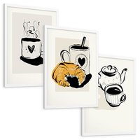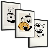 Zestaw obrazy w ramie, plakaty - kot, ilustracja, grafika