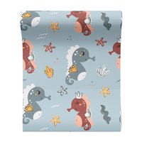 Tapeta - dziecięca, koniki morskie, gwiazdy, korony