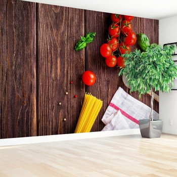 Fototapeta - pomidory, spaghetti, bazylia