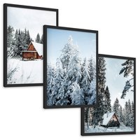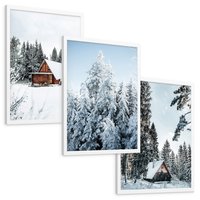 Zestaw obrazy w ramie, plakaty - zima, śnieg, drzewa