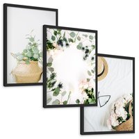 Zestaw obrazy w ramie, plakaty - kwiaty, liście, eukaliptus