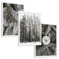 Zestaw obrazy w ramie, plakaty - zima, śnieg, las