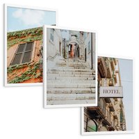 Zestaw obrazy w ramie, plakaty - architektura, pastelowe, śródziemnomorskie