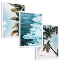 Zestaw obrazy w ramie, plakaty - palmy, morze, woda