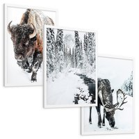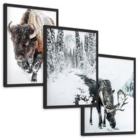 Zestaw obrazy w ramie, plakaty - bizon, łoś, zima