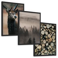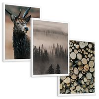 Zestaw obrazy w ramie, plakaty - las, drzewa, jeleń