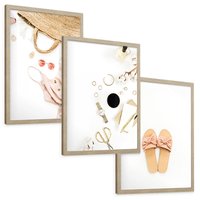 Zestaw obrazy w ramie, plakaty - akcesoria, różowy, złoty