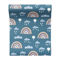 Tapeta - dziecięca, księżyc, tęcza, kwiaty