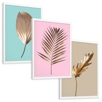 Zestaw obrazy w ramie, plakaty - liście, złoty, dekoracja