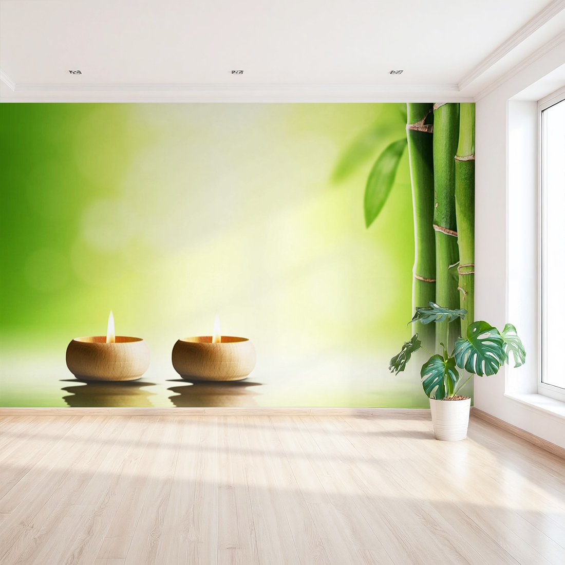Nadaj swojemu wnętrzu unikalny charakter i głębię dzięki naszej fototapecie z motywem bambus, świece, relaks. Ta imponująca dekoracja ścienna to połączenie nowoczesnego designu i zapierającego dech w piersiach motywu, które całkowicie odmieni Twoje pomieszczenie