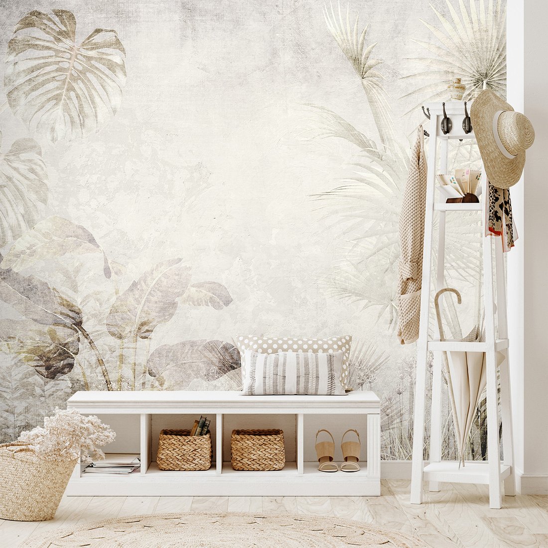 Nadaj swojemu wnętrzu unikalny charakter i głębię dzięki naszej fototapecie z motywem beton, palmy, liście. Ta imponująca dekoracja ścienna to połączenie nowoczesnego designu i zapierającego dech w piersiach motywu, które całkowicie odmieni Twoje pomieszczenie