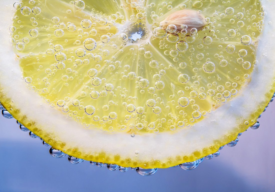 Fototapeta - cytryna, woda, bąbelki