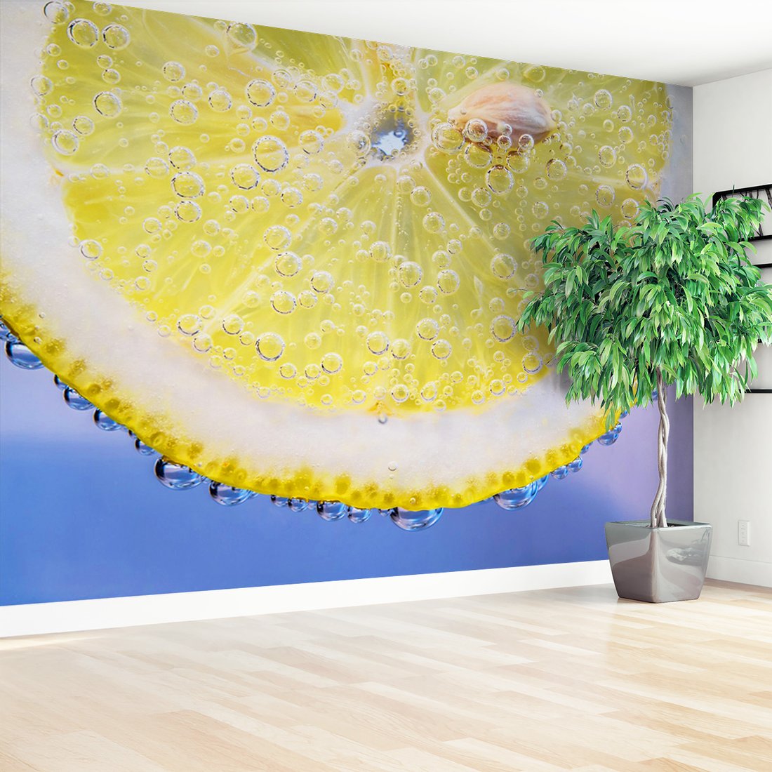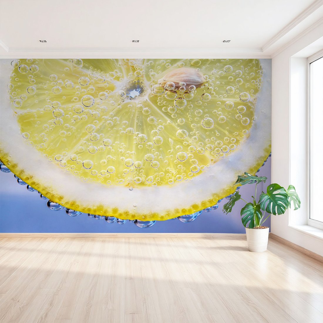 Nadaj swojemu wnętrzu unikalny charakter i głębię dzięki naszej fototapecie z motywem cytryna, woda, bąbelki. Ta imponująca dekoracja ścienna to połączenie nowoczesnego designu i zapierającego dech w piersiach motywu, które całkowicie odmieni Twoje pomieszczenie