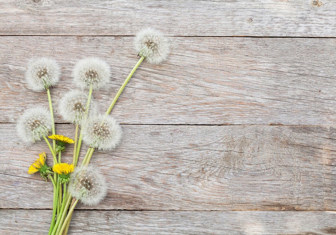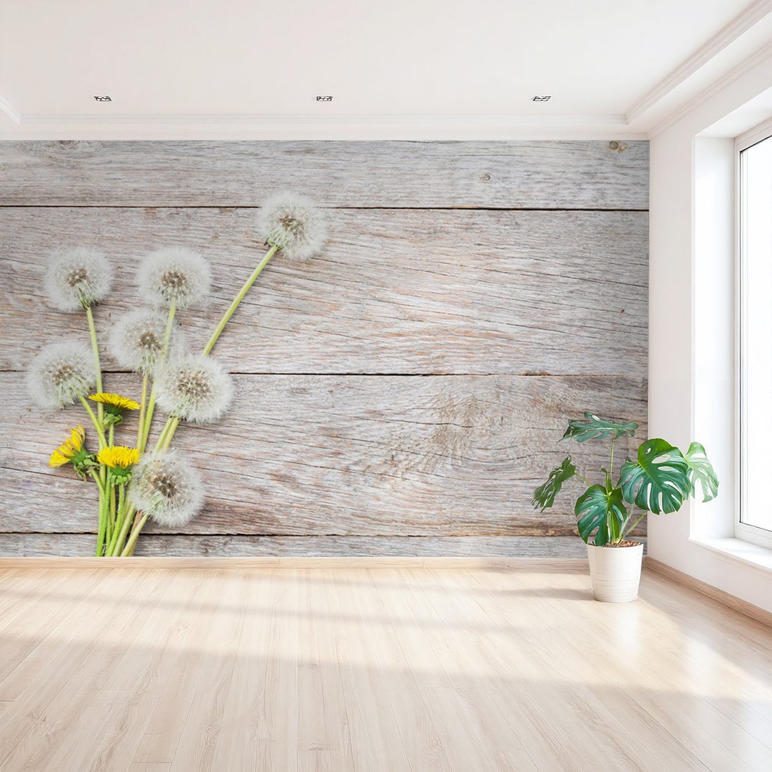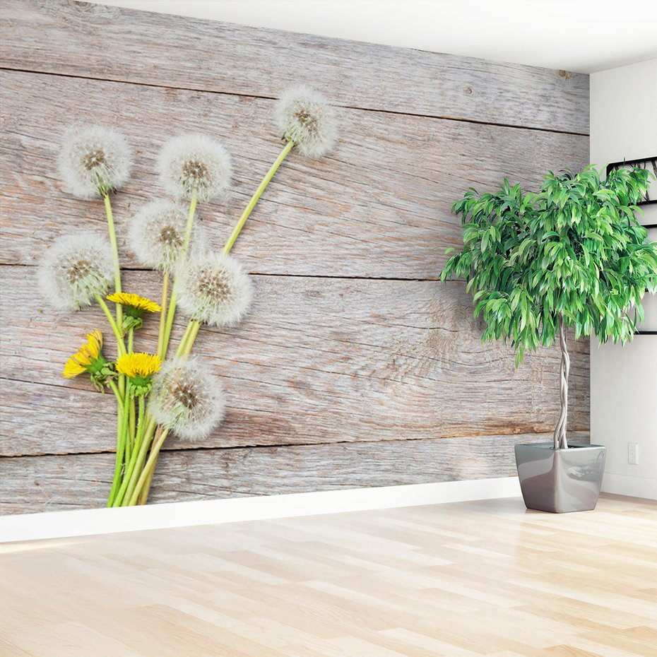 - Fototapeta - dmuchawce, kwiaty, drewno