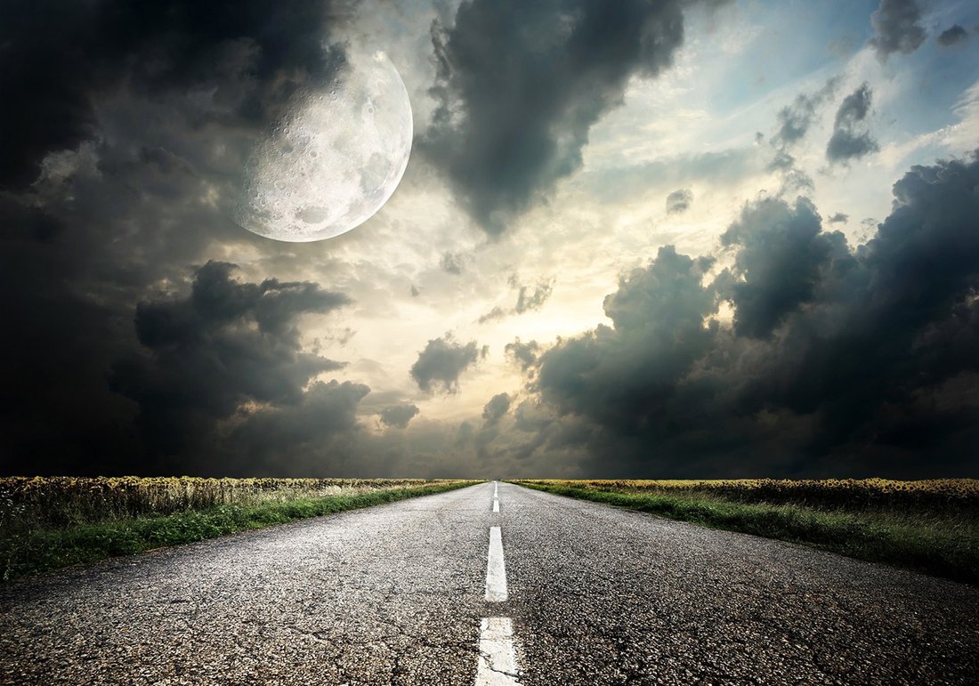 Nadaj swojemu wnętrzu unikalny charakter i głębię dzięki naszej fototapecie z motywem droga, księżyc, chmury. Ta imponująca dekoracja ścienna to połączenie nowoczesnego designu i zapierającego dech w piersiach motywu, które całkowicie odmieni Twoje pomieszczenie