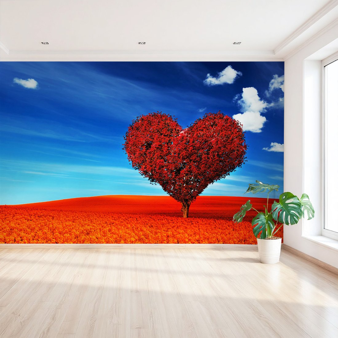 Nadaj swojemu wnętrzu unikalny charakter i głębię dzięki naszej fototapecie z motywem drzewo, serce, krajobraz. Ta imponująca dekoracja ścienna to połączenie nowoczesnego designu i zapierającego dech w piersiach motywu, które całkowicie odmieni Twoje pomieszczenie