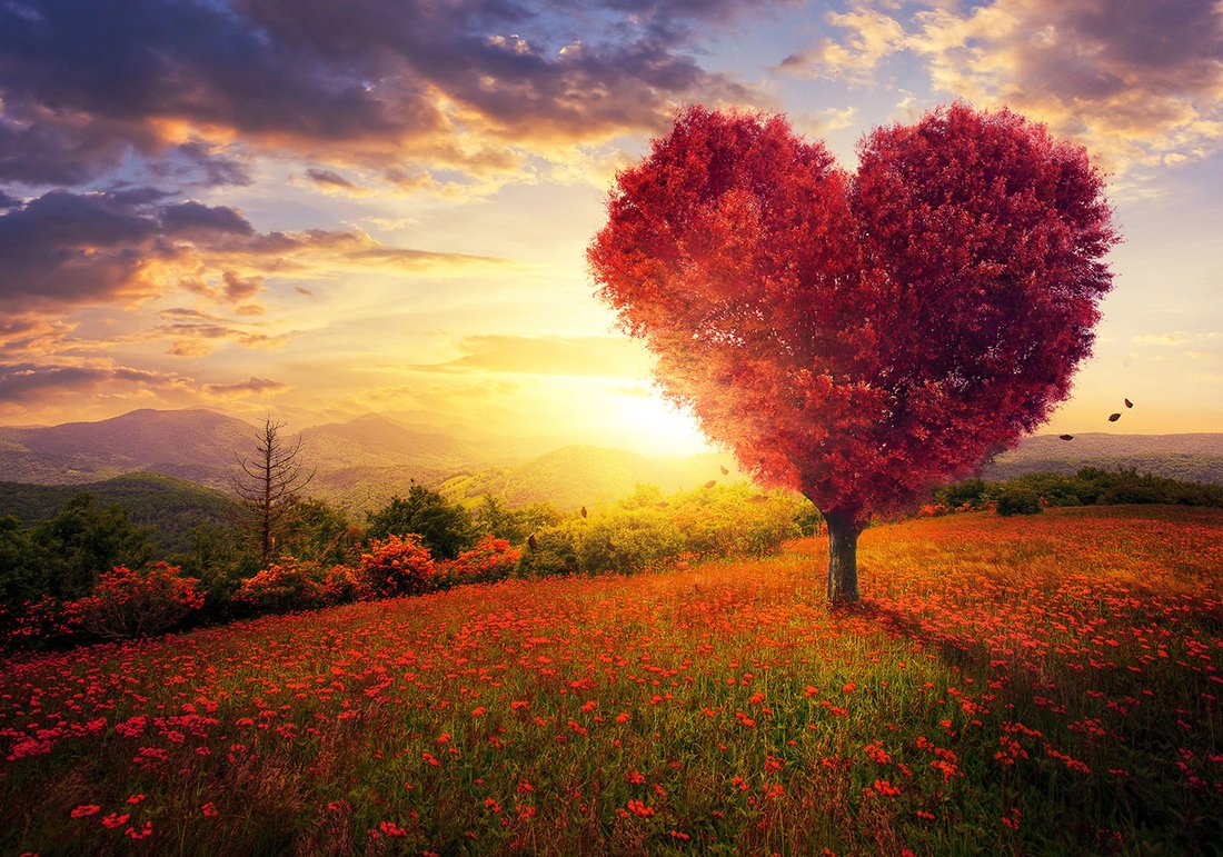 - Fototapeta - drzewo serce, krajobraz, kwiaty