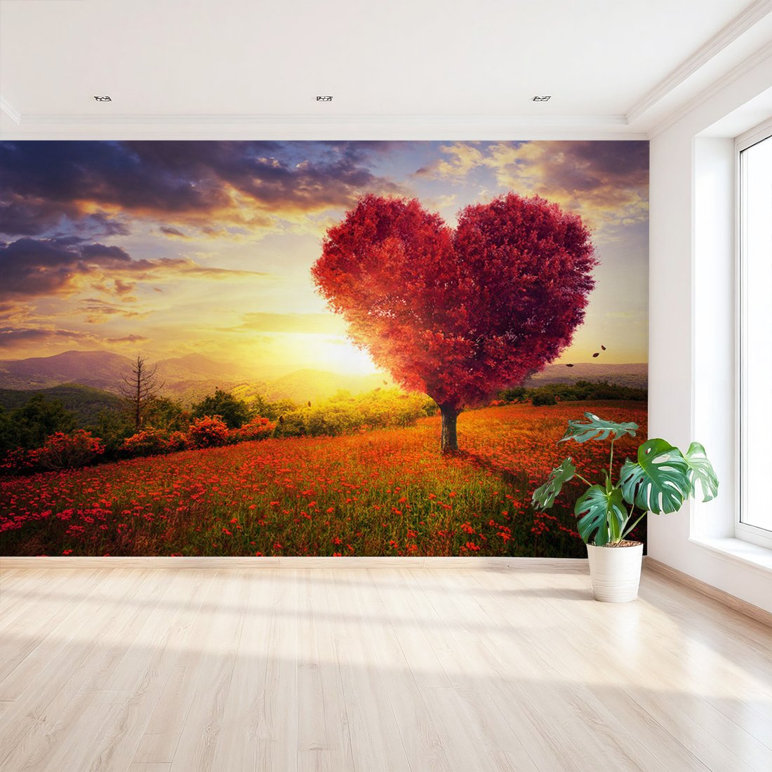 Nadaj swojemu wnętrzu unikalny charakter i głębię dzięki naszej fototapecie z motywem drzewo serce, krajobraz, kwiaty. Ta imponująca dekoracja ścienna to połączenie nowoczesnego designu i zapierającego dech w piersiach motywu, które całkowicie odmieni Twoje pomieszczenie
