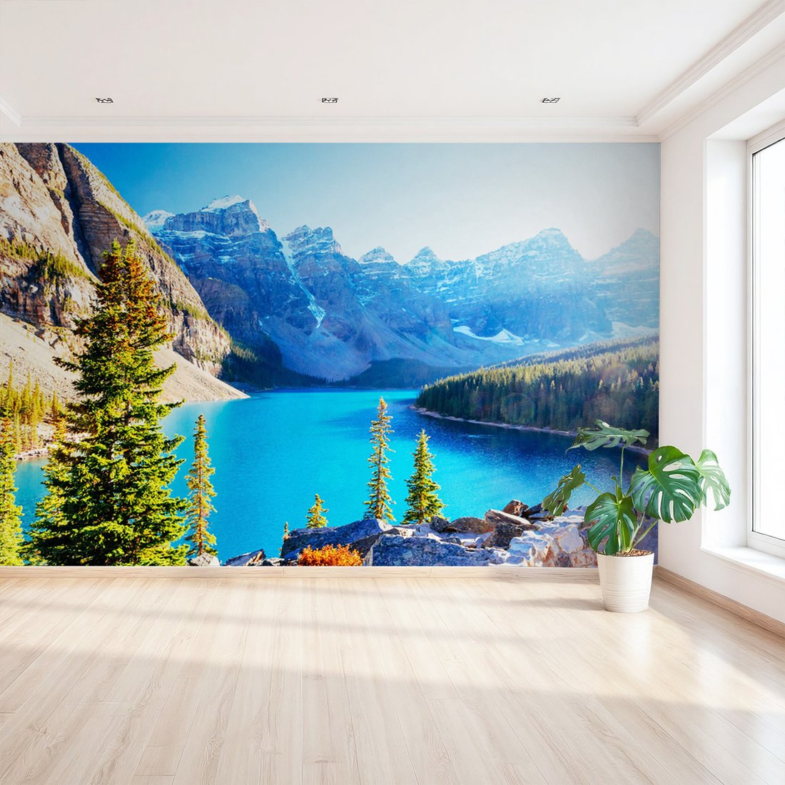 Nadaj swojemu wnętrzu unikalny charakter i głębię dzięki naszej fototapecie z motywem góry, jezioro, las. Ta imponująca dekoracja ścienna to połączenie nowoczesnego designu i zapierającego dech w piersiach motywu, które całkowicie odmieni Twoje pomieszczenie