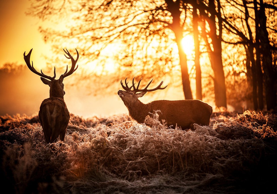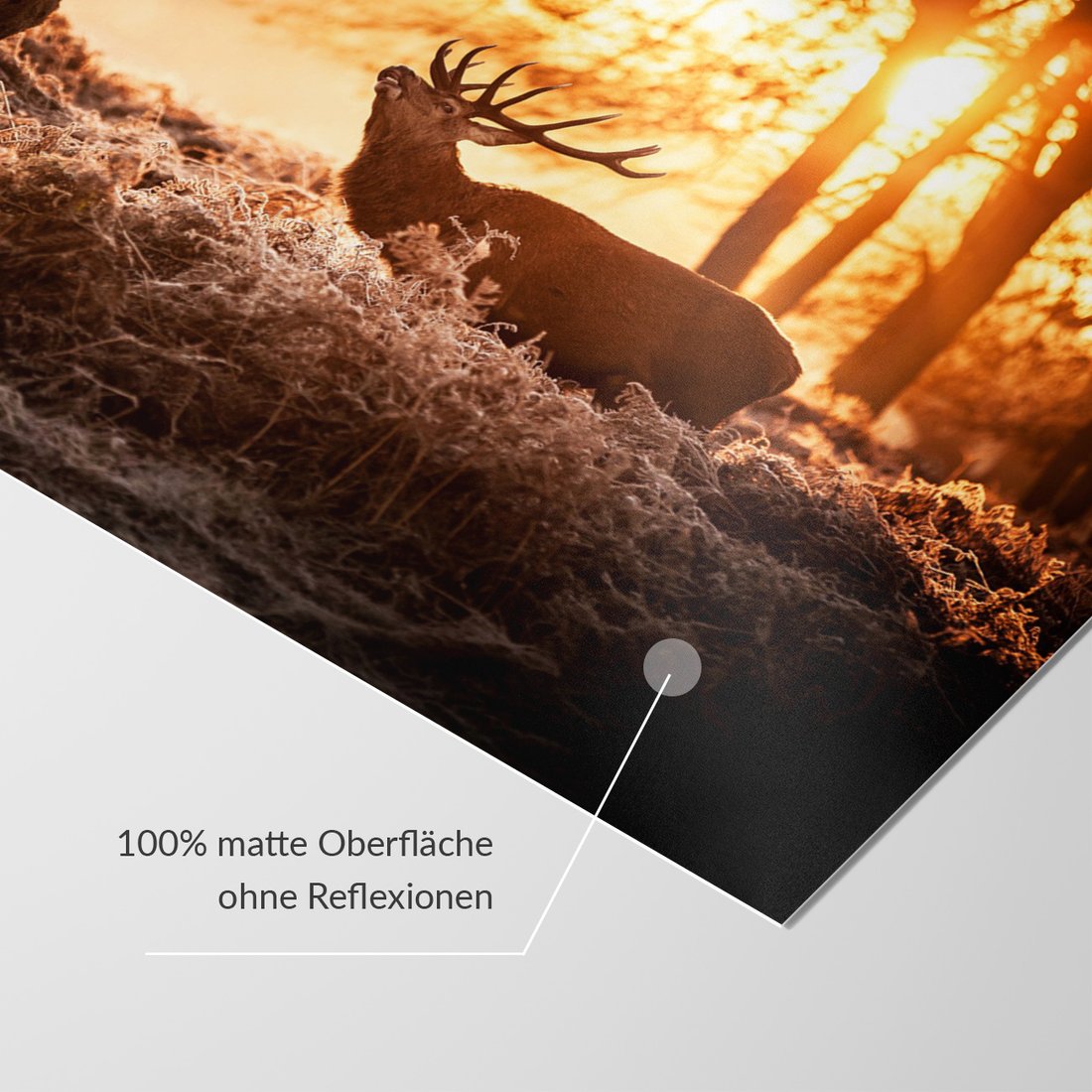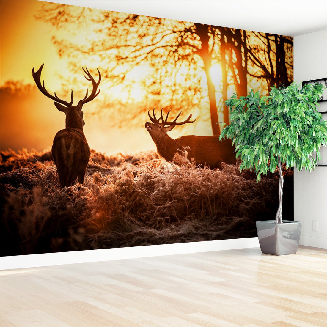 Nadaj swojemu wnętrzu unikalny charakter i głębię dzięki naszej fototapecie z motywem jelenie, las, zachód słońca. Ta imponująca dekoracja ścienna to połączenie nowoczesnego designu i zapierającego dech w piersiach motywu, które całkowicie odmieni Twoje pomieszczenie