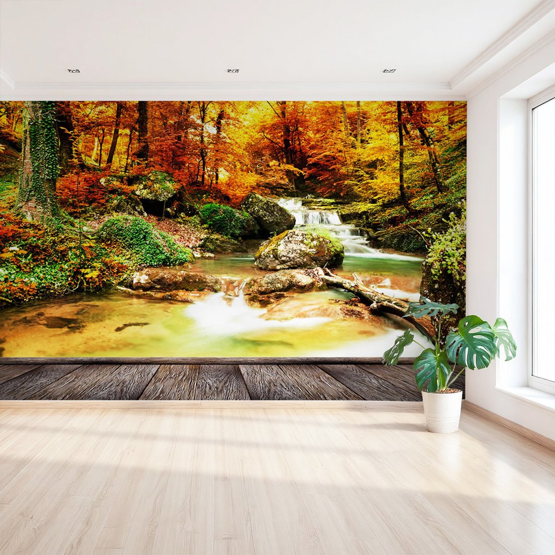 Nadaj swojemu wnętrzu unikalny charakter i głębię dzięki naszej fototapecie z motywem jesień, las, wodospad. Ta imponująca dekoracja ścienna to połączenie nowoczesnego designu i zapierającego dech w piersiach motywu, które całkowicie odmieni Twoje pomieszczenie