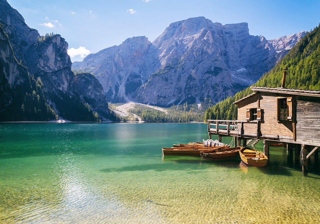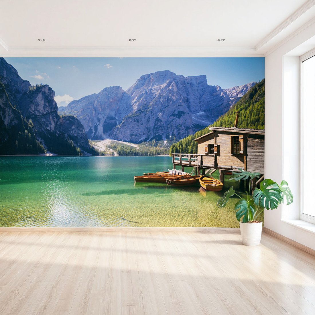 Nadaj swojemu wnętrzu unikalny charakter i głębię dzięki naszej fototapecie z motywem jezioro, góry, domki. Ta imponująca dekoracja ścienna to połączenie nowoczesnego designu i zapierającego dech w piersiach motywu, które całkowicie odmieni Twoje pomieszczenie