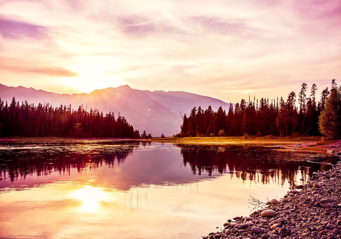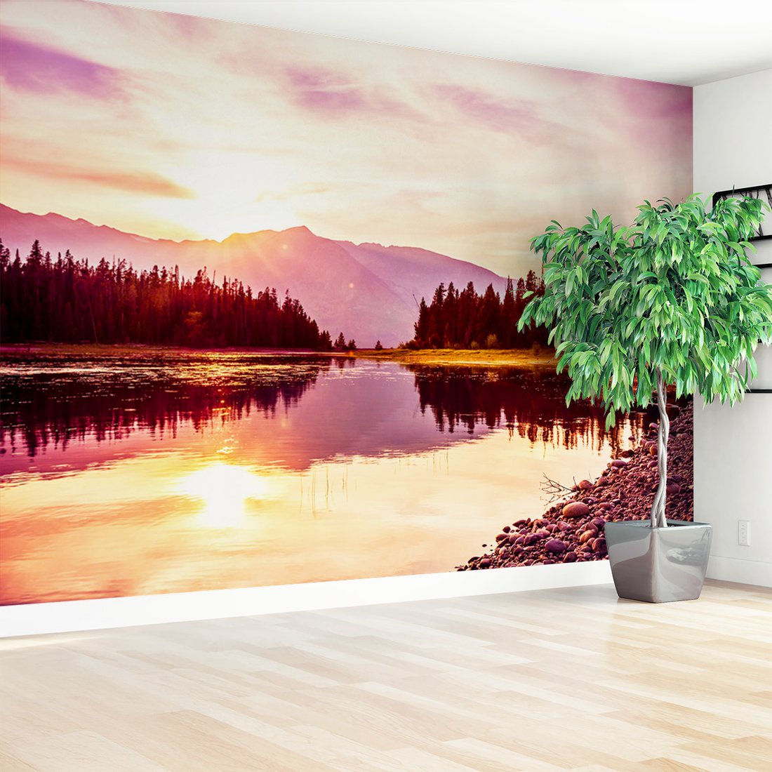 Nadaj swojemu wnętrzu unikalny charakter i głębię dzięki naszej fototapecie z motywem jezioro, góry, lasy. Ta imponująca dekoracja ścienna to połączenie nowoczesnego designu i zapierającego dech w piersiach motywu, które całkowicie odmieni Twoje pomieszczenie