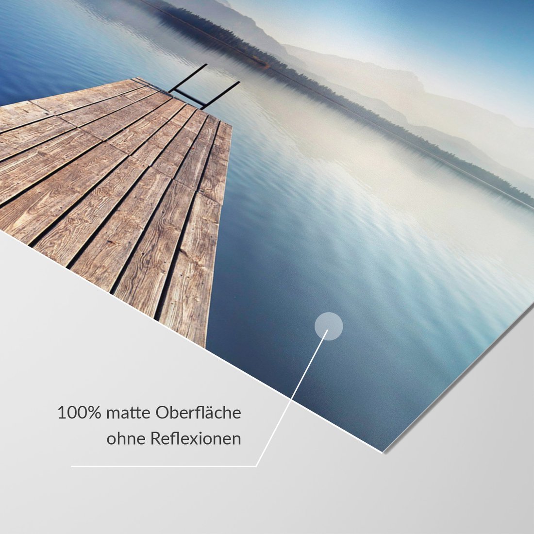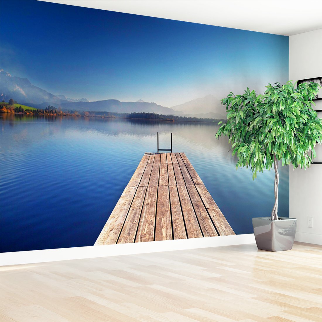 Nadaj swojemu wnętrzu unikalny charakter i głębię dzięki naszej fototapecie z motywem jezioro, góry, pomost. Ta imponująca dekoracja ścienna to połączenie nowoczesnego designu i zapierającego dech w piersiach motywu, które całkowicie odmieni Twoje pomieszczenie