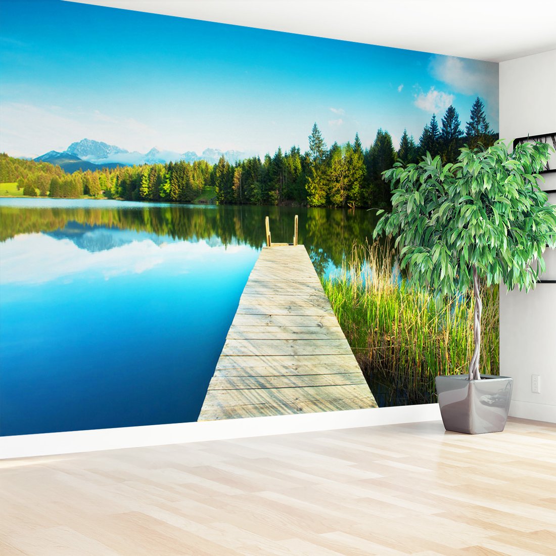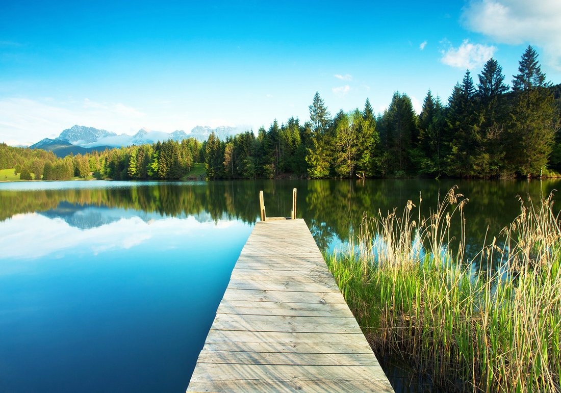Nadaj swojemu wnętrzu unikalny charakter i głębię dzięki naszej fototapecie z motywem jezioro, pomost, las. Ta imponująca dekoracja ścienna to połączenie nowoczesnego designu i zapierającego dech w piersiach motywu, które całkowicie odmieni Twoje pomieszczenie