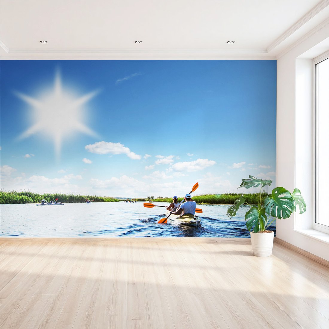 Nadaj swojemu wnętrzu unikalny charakter i głębię dzięki naszej fototapecie z motywem kajaki, woda, lato. Ta imponująca dekoracja ścienna to połączenie nowoczesnego designu i zapierającego dech w piersiach motywu, które całkowicie odmieni Twoje pomieszczenie