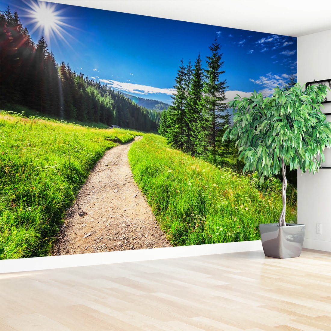Nadaj swojemu wnętrzu unikalny charakter i głębię dzięki naszej fototapecie z motywem krajobraz, las, ścieżka. Ta imponująca dekoracja ścienna to połączenie nowoczesnego designu i zapierającego dech w piersiach motywu, które całkowicie odmieni Twoje pomieszczenie
