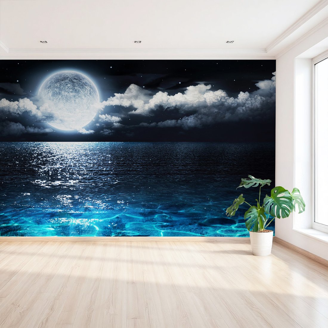 Nadaj swojemu wnętrzu unikalny charakter i głębię dzięki naszej fototapecie z motywem księżyc, morze, noc. Ta imponująca dekoracja ścienna to połączenie nowoczesnego designu i zapierającego dech w piersiach motywu, które całkowicie odmieni Twoje pomieszczenie