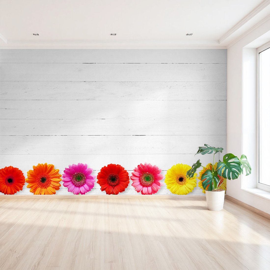 Nadaj swojemu wnętrzu unikalny charakter i głębię dzięki naszej fototapecie z motywem kwiaty, gerbery, kolorowe. Ta imponująca dekoracja ścienna to połączenie nowoczesnego designu i zapierającego dech w piersiach motywu, które całkowicie odmieni Twoje pomieszczenie