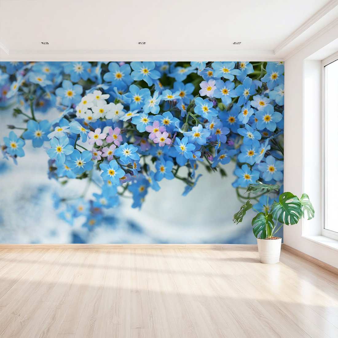 Nadaj swojemu wnętrzu unikalny charakter i głębię dzięki naszej fototapecie z motywem kwiaty, niezapominajki, wiosna. Ta imponująca dekoracja ścienna to połączenie nowoczesnego designu i zapierającego dech w piersiach motywu, które całkowicie odmieni Twoje pomieszczenie