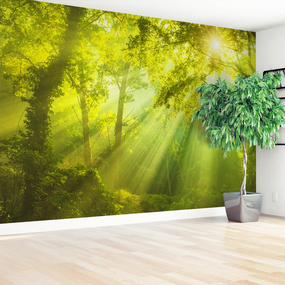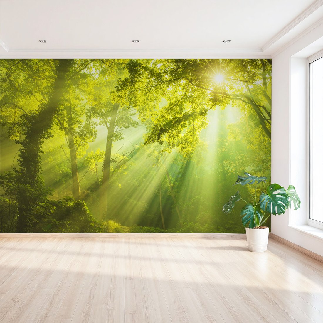 Nadaj swojemu wnętrzu unikalny charakter i głębię dzięki naszej fototapecie z motywem las, drzewa, słońce. Ta imponująca dekoracja ścienna to połączenie nowoczesnego designu i zapierającego dech w piersiach motywu, które całkowicie odmieni Twoje pomieszczenie