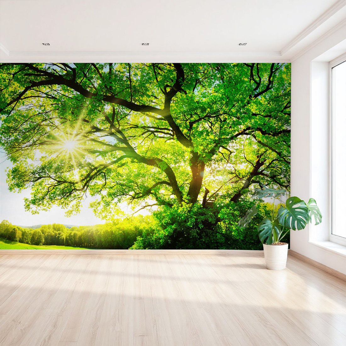 Nadaj swojemu wnętrzu unikalny charakter i głębię dzięki naszej fototapecie z motywem las, drzewo, słońce. Ta imponująca dekoracja ścienna to połączenie nowoczesnego designu i zapierającego dech w piersiach motywu, które całkowicie odmieni Twoje pomieszczenie