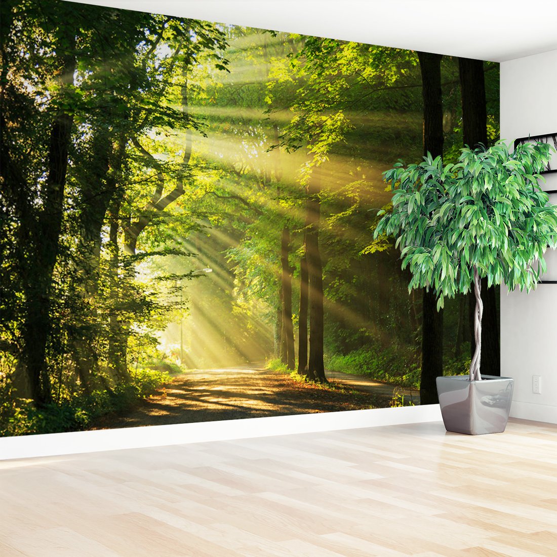 Nadaj swojemu wnętrzu unikalny charakter i głębię dzięki naszej fototapecie z motywem las, promienie, słońce. Ta imponująca dekoracja ścienna to połączenie nowoczesnego designu i zapierającego dech w piersiach motywu, które całkowicie odmieni Twoje pomieszczenie