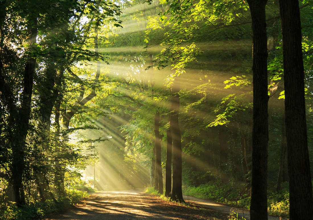 - Fototapeta - las, promienie, słońce