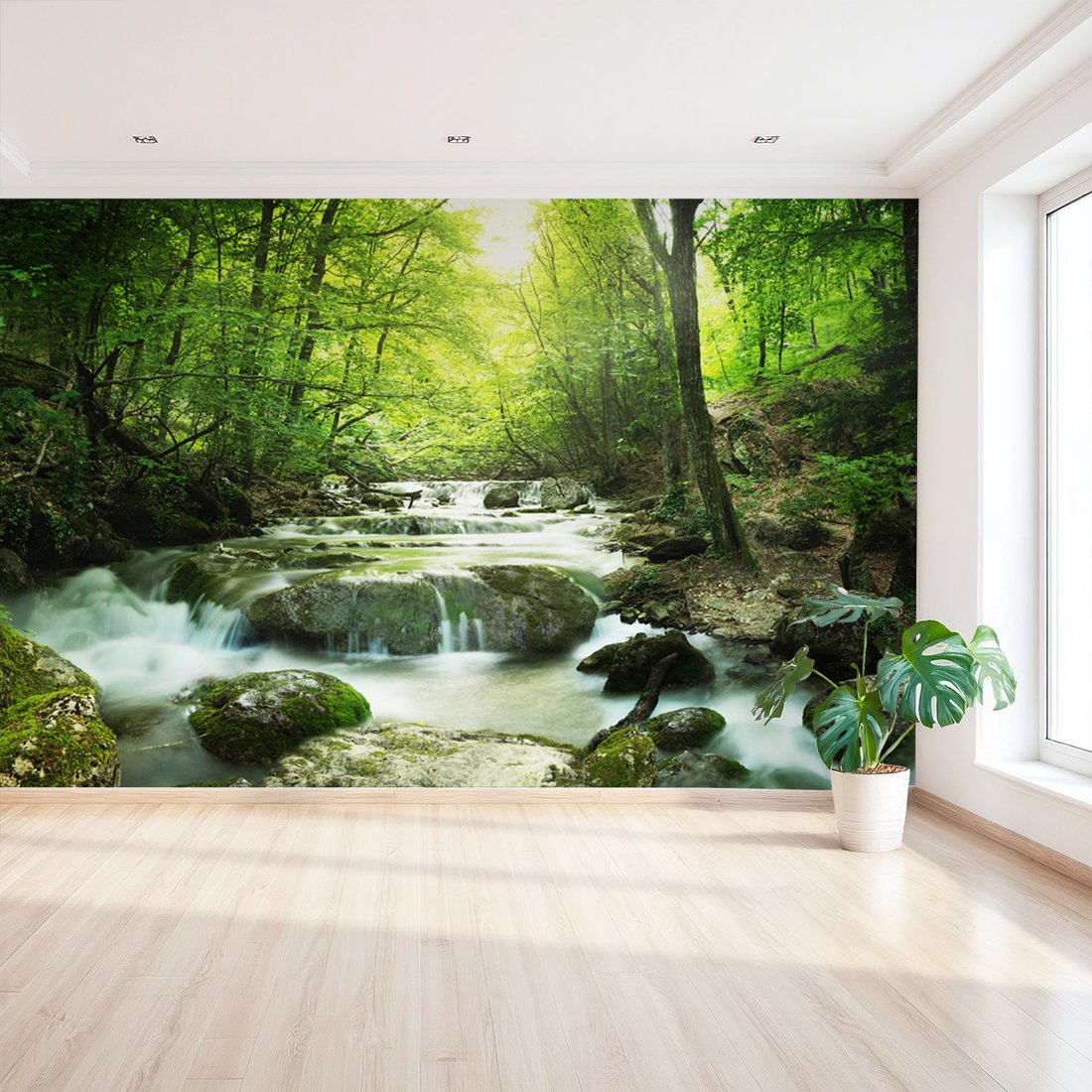 Nadaj swojemu wnętrzu unikalny charakter i głębię dzięki naszej fototapecie z motywem las, rzeka, wodospad. Ta imponująca dekoracja ścienna to połączenie nowoczesnego designu i zapierającego dech w piersiach motywu, które całkowicie odmieni Twoje pomieszczenie
