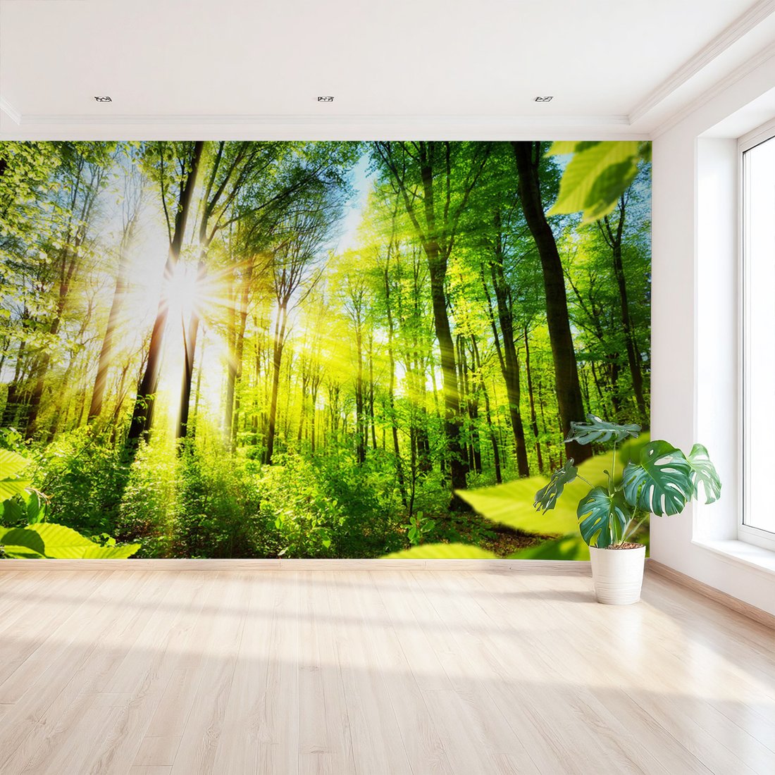Nadaj swojemu wnętrzu unikalny charakter i głębię dzięki naszej fototapecie z motywem las, słońce, drzewa. Ta imponująca dekoracja ścienna to połączenie nowoczesnego designu i zapierającego dech w piersiach motywu, które całkowicie odmieni Twoje pomieszczenie