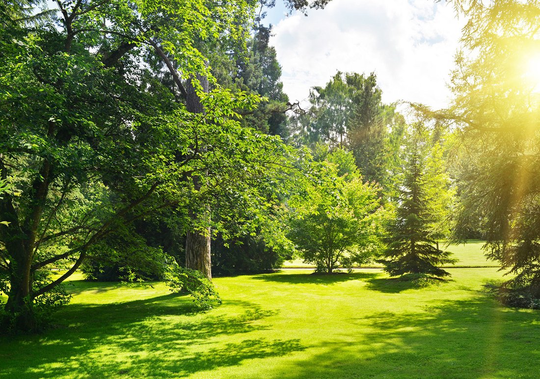 - Fototapeta - las, trawa, drzewa