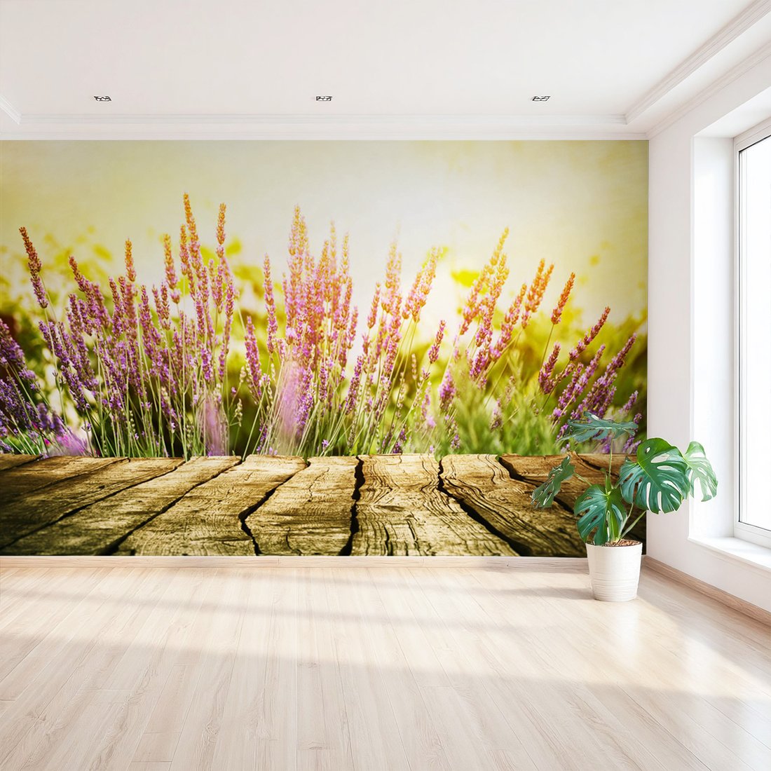 Nadaj swojemu wnętrzu unikalny charakter i głębię dzięki naszej fototapecie z motywem lawenda, kwiaty, drewno. Ta imponująca dekoracja ścienna to połączenie nowoczesnego designu i zapierającego dech w piersiach motywu, które całkowicie odmieni Twoje pomieszczenie