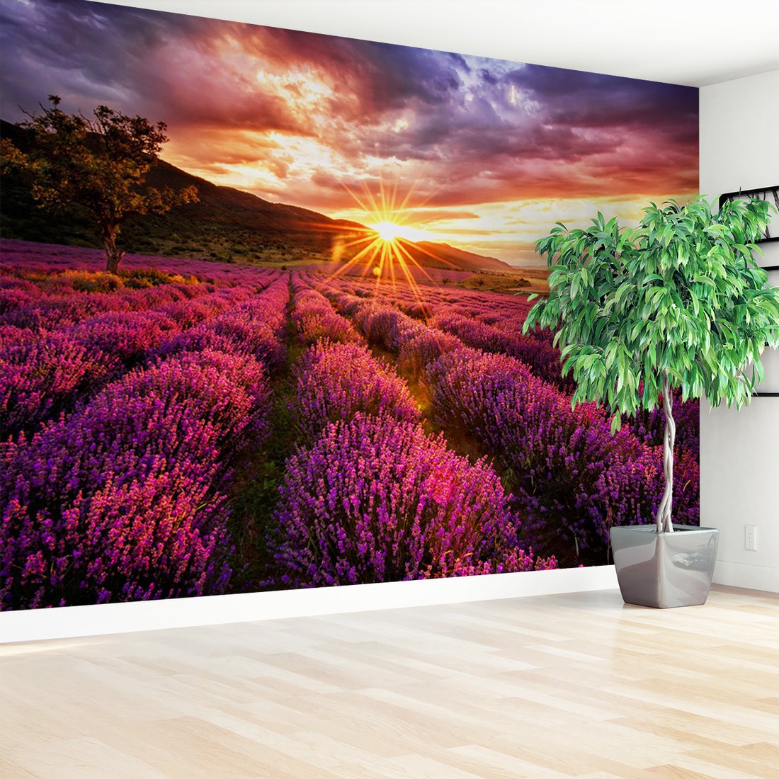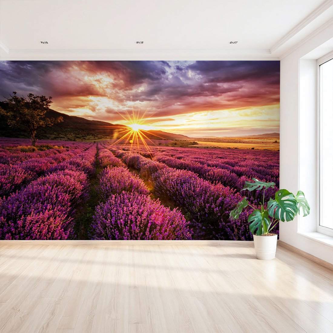 Nadaj swojemu wnętrzu unikalny charakter i głębię dzięki naszej fototapecie z motywem lawenda, pole, zachód słońca. Ta imponująca dekoracja ścienna to połączenie nowoczesnego designu i zapierającego dech w piersiach motywu, które całkowicie odmieni Twoje pomieszczenie