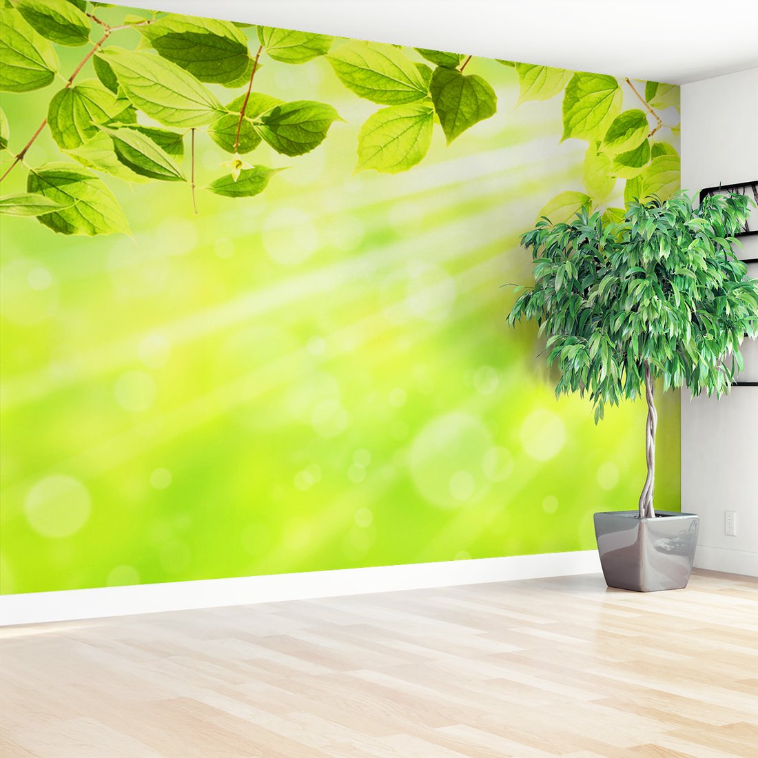 Nadaj swojemu wnętrzu unikalny charakter i głębię dzięki naszej fototapecie z motywem liście, światło, natura. Ta imponująca dekoracja ścienna to połączenie nowoczesnego designu i zapierającego dech w piersiach motywu, które całkowicie odmieni Twoje pomieszczenie