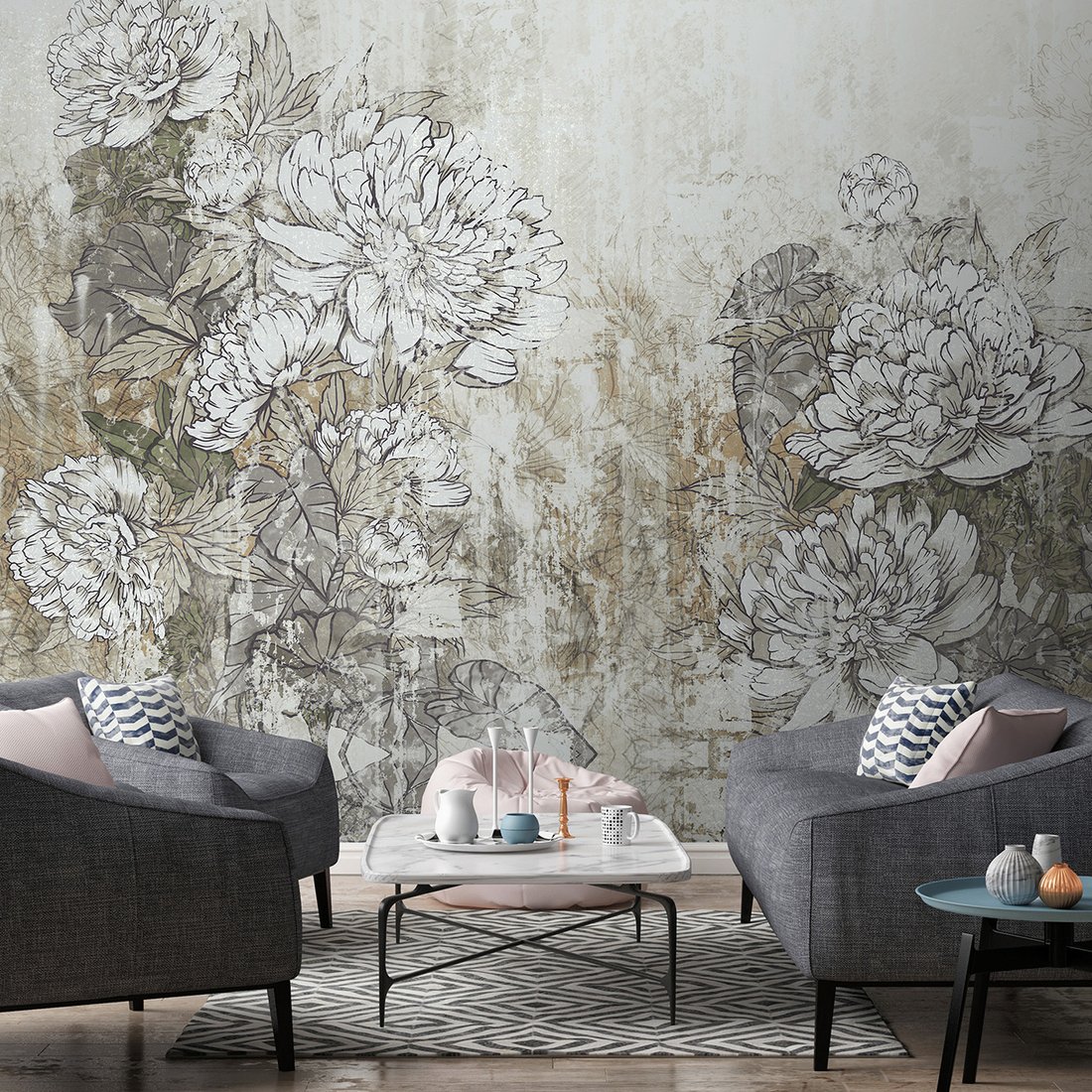 - Fototapeta - loft, kwiaty, mural