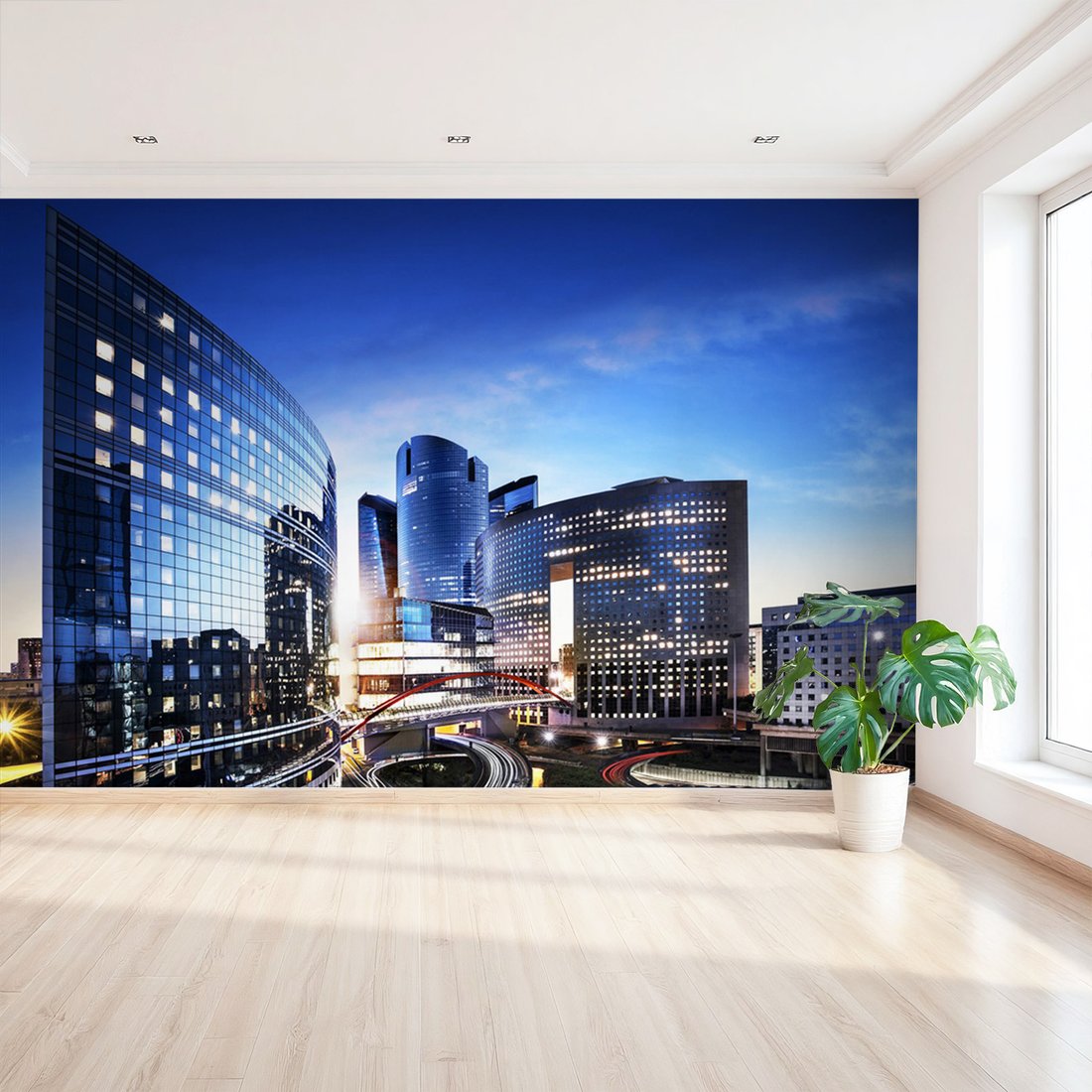 Nadaj swojemu wnętrzu unikalny charakter i głębię dzięki naszej fototapecie z motywem miasto, budynki, noc. Ta imponująca dekoracja ścienna to połączenie nowoczesnego designu i zapierającego dech w piersiach motywu, które całkowicie odmieni Twoje pomieszczenie