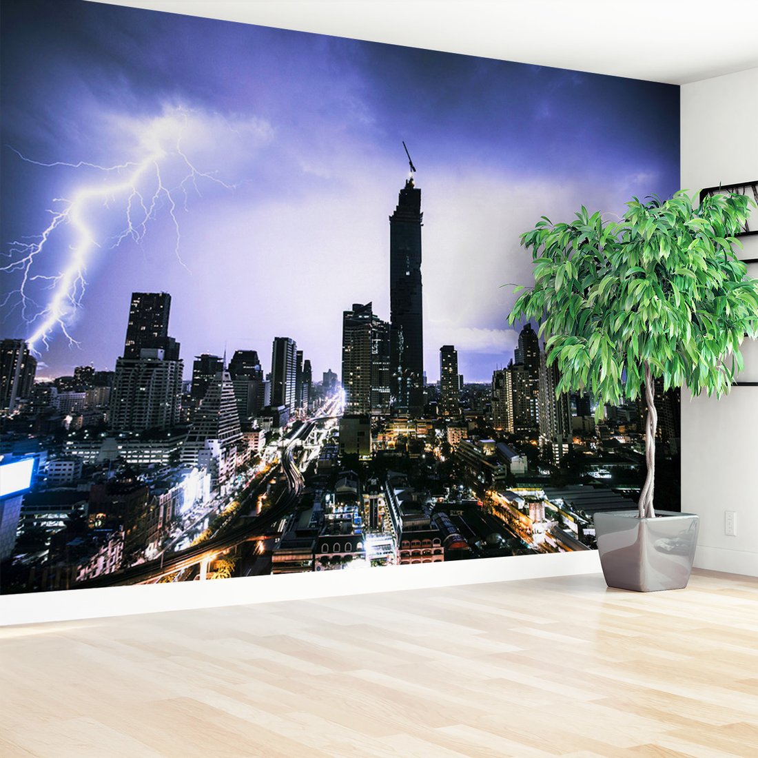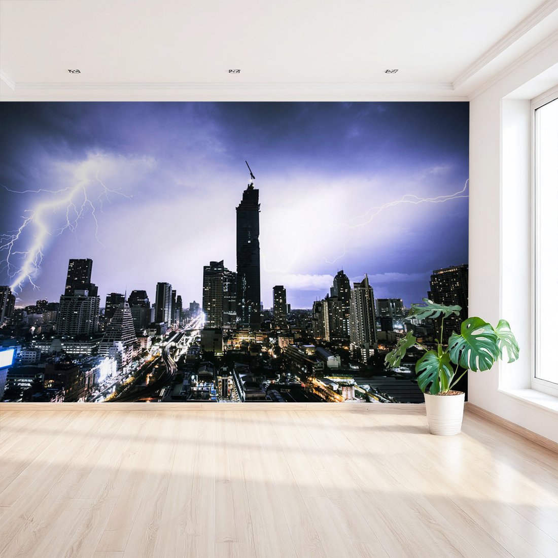 Nadaj swojemu wnętrzu unikalny charakter i głębię dzięki naszej fototapecie z motywem miasto, burza, noc. Ta imponująca dekoracja ścienna to połączenie nowoczesnego designu i zapierającego dech w piersiach motywu, które całkowicie odmieni Twoje pomieszczenie