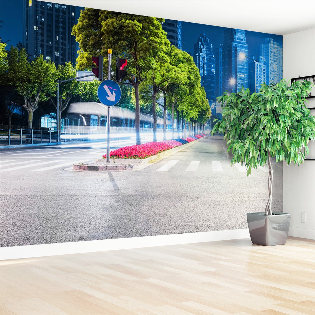 Nadaj swojemu wnętrzu unikalny charakter i głębię dzięki naszej fototapecie z motywem miasto, ulica, noc. Ta imponująca dekoracja ścienna to połączenie nowoczesnego designu i zapierającego dech w piersiach motywu, które całkowicie odmieni Twoje pomieszczenie