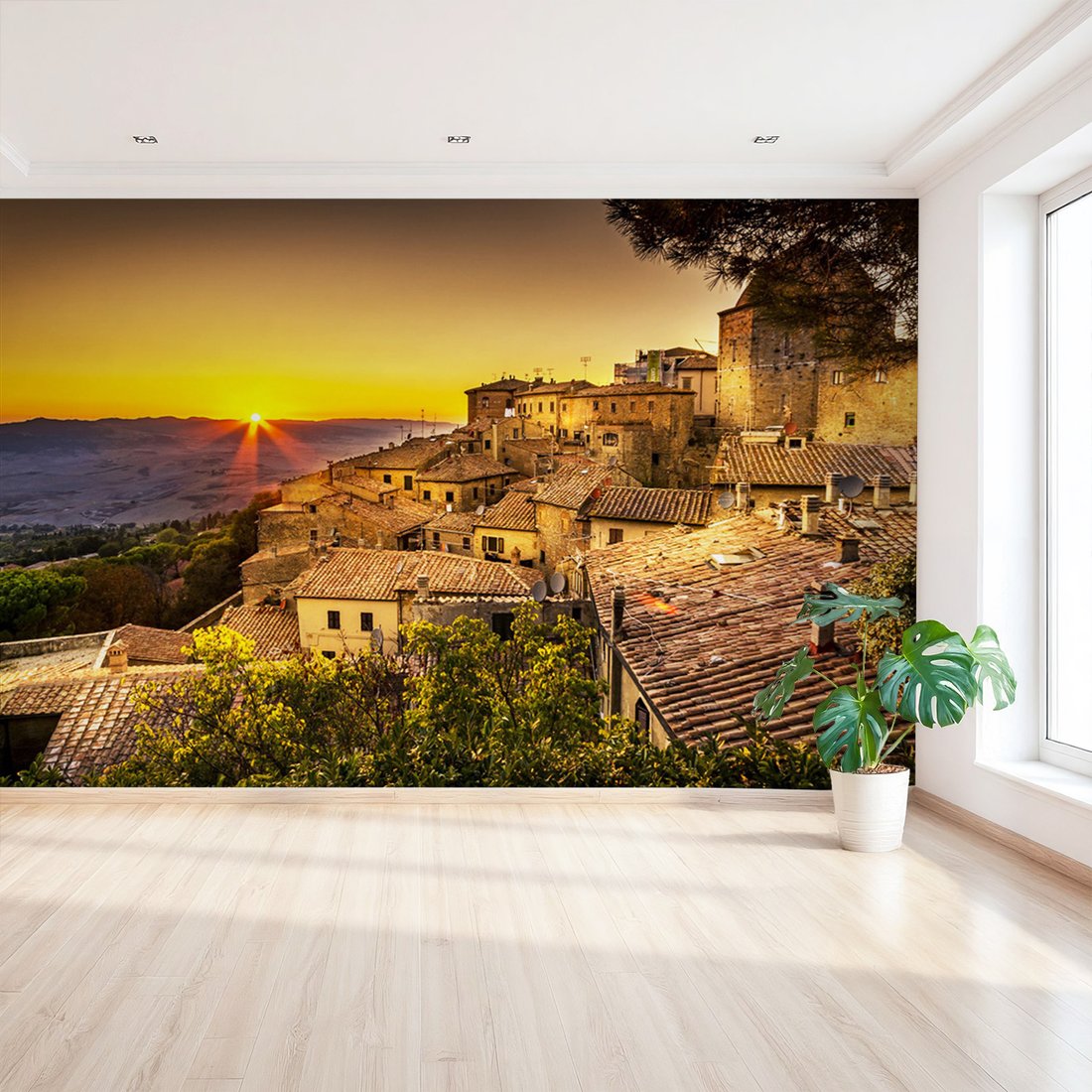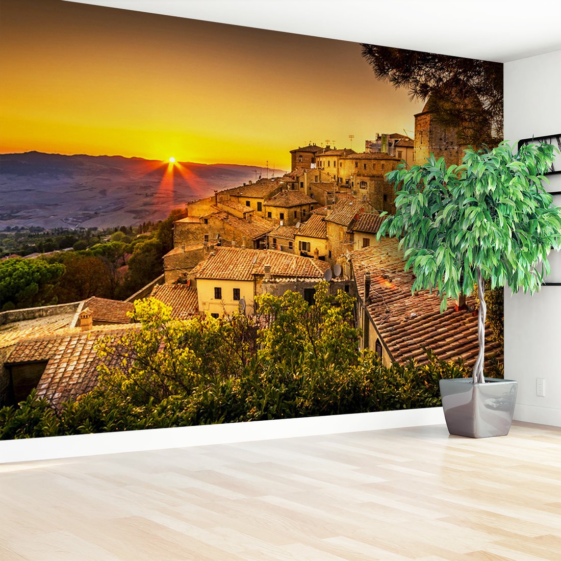 Nadaj swojemu wnętrzu unikalny charakter i głębię dzięki naszej fototapecie z motywem miasto, zachód słońca, wzgórze. Ta imponująca dekoracja ścienna to połączenie nowoczesnego designu i zapierającego dech w piersiach motywu, które całkowicie odmieni Twoje pomieszczenie