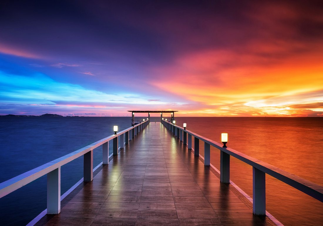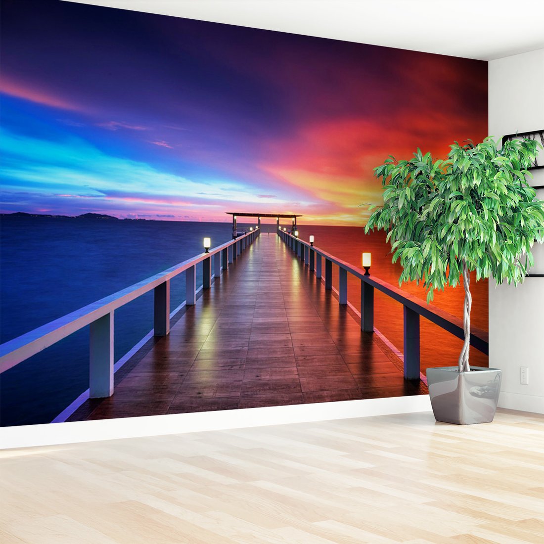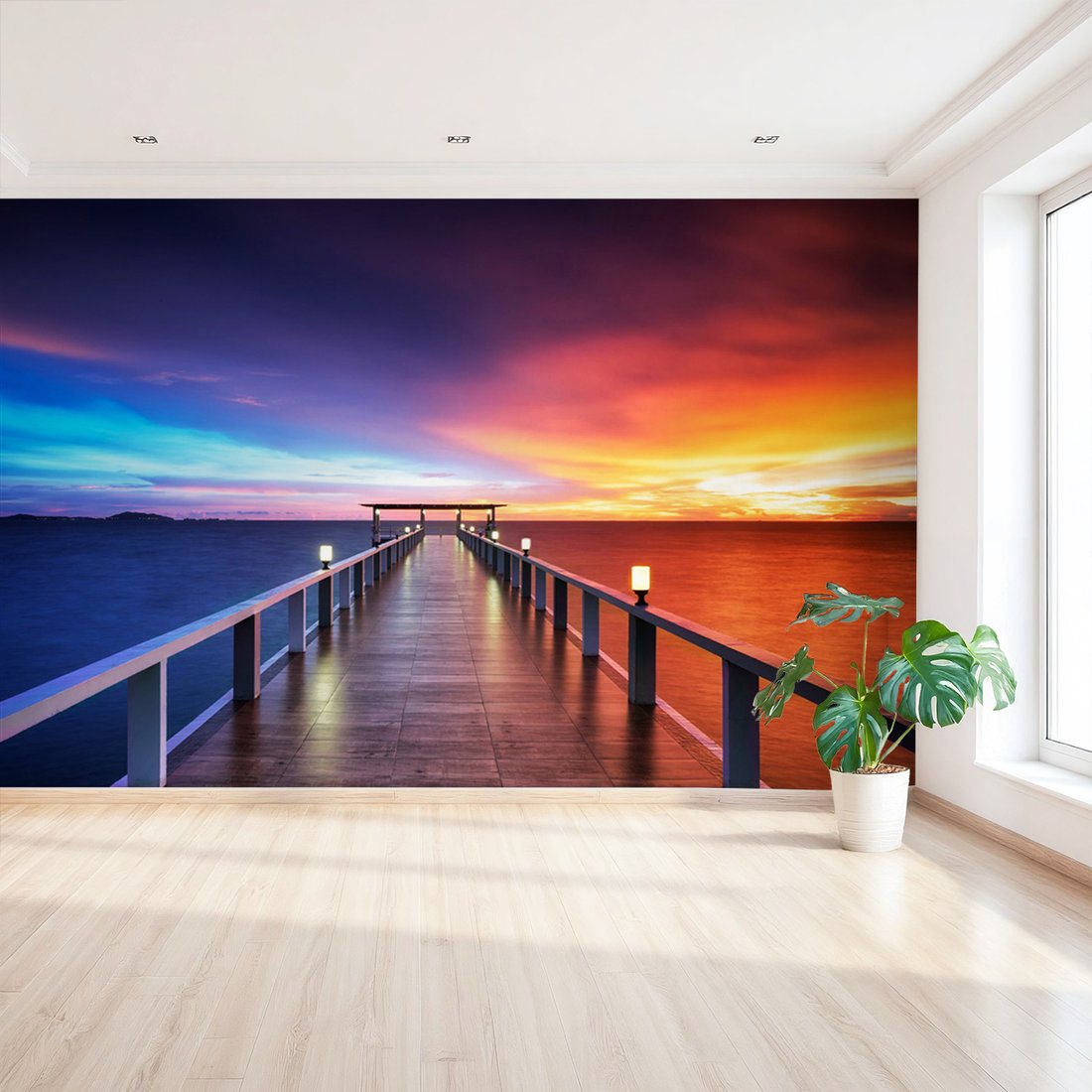 Nadaj swojemu wnętrzu unikalny charakter i głębię dzięki naszej fototapecie z motywem morze, zachód słońca, molo. Ta imponująca dekoracja ścienna to połączenie nowoczesnego designu i zapierającego dech w piersiach motywu, które całkowicie odmieni Twoje pomieszczenie